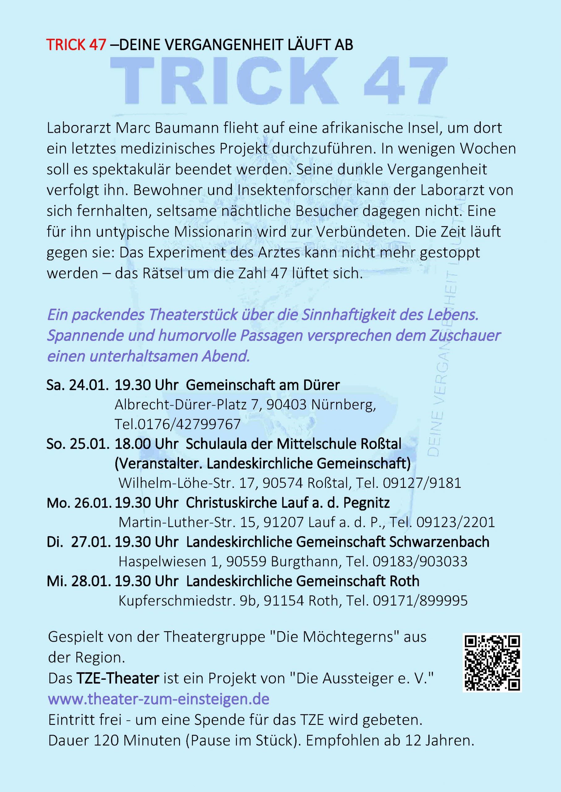 Termine Hier sehen Sie die Termine der nächsten Saison (Flyervorderseite – darunter jeweils die Rückseite). Bei „Klick“ sehen Sie die Flyer in groß. Frankentour 24.01.-28.01.2026 Leverkusen-Haan 21.02.-26.02.26 Hamburg 21.03.-26.03.26 Heilbronn 18.4.-22.4.26 Heidelberg 9.5.-14.5.26 Termine Hier sehen Sie die Termine der nächsten Saison (Flyervorderseiten).